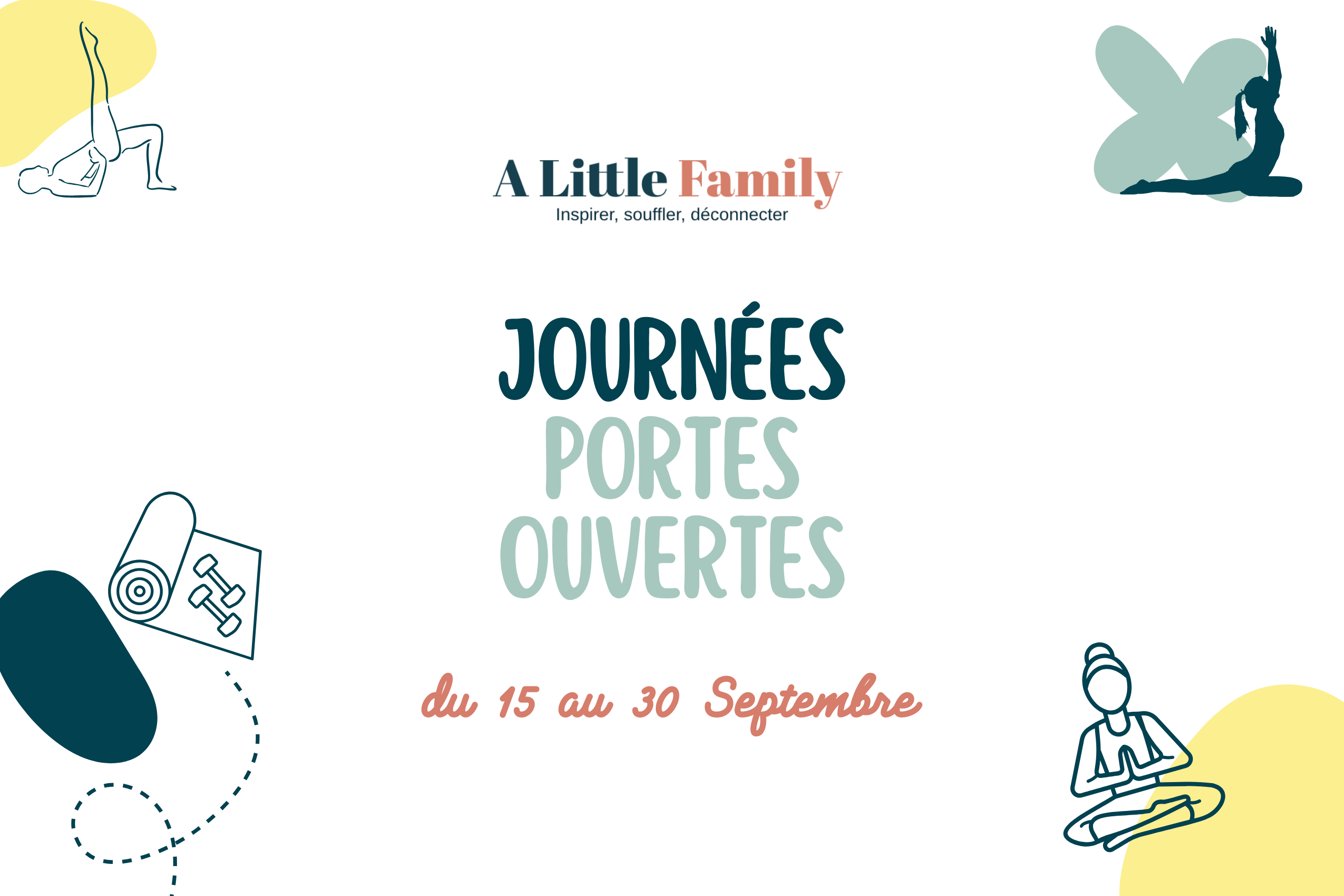 Retrouvez nous pour nos journées portes ouvertes avec nos supers coachs! Pilates (Hamac, Circuit, Cardio, Flow, Stretching, Toy Board, jeune…